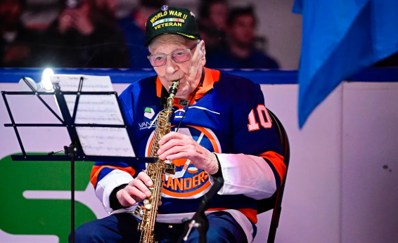 104-Year-Old WWII Veteran Brings Entire Hockey Arena to Tears With National Anthem Performance