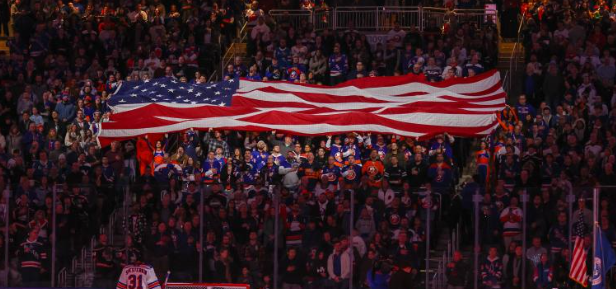 As Critelli stepped onto the ice at the Islanders vs. Rangers game, the crowd erupted with cheers upon learning that a 104-year-old WWII veteran would perform the National Anthem.
