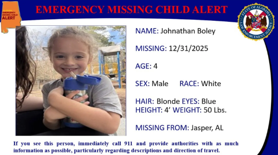 On December 31st, approximately 11:30 a.m. local time, Boley was last observed at the 7000 block of Highway 195 in Jasper, according to an Alabama Law Enforcement Agency alert. Authorities initially believed the 4-year-old faced potential danger.