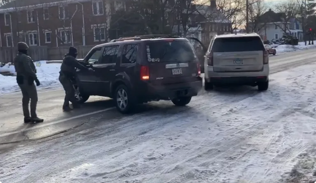 ICE agents had encircled a maroon Honda Pilot that had stopped in the middle of the street. A bystander’s disturbing video footage documented the frightening sequence of events: one officer attempts to access the driver’s door while another draws his firearm.