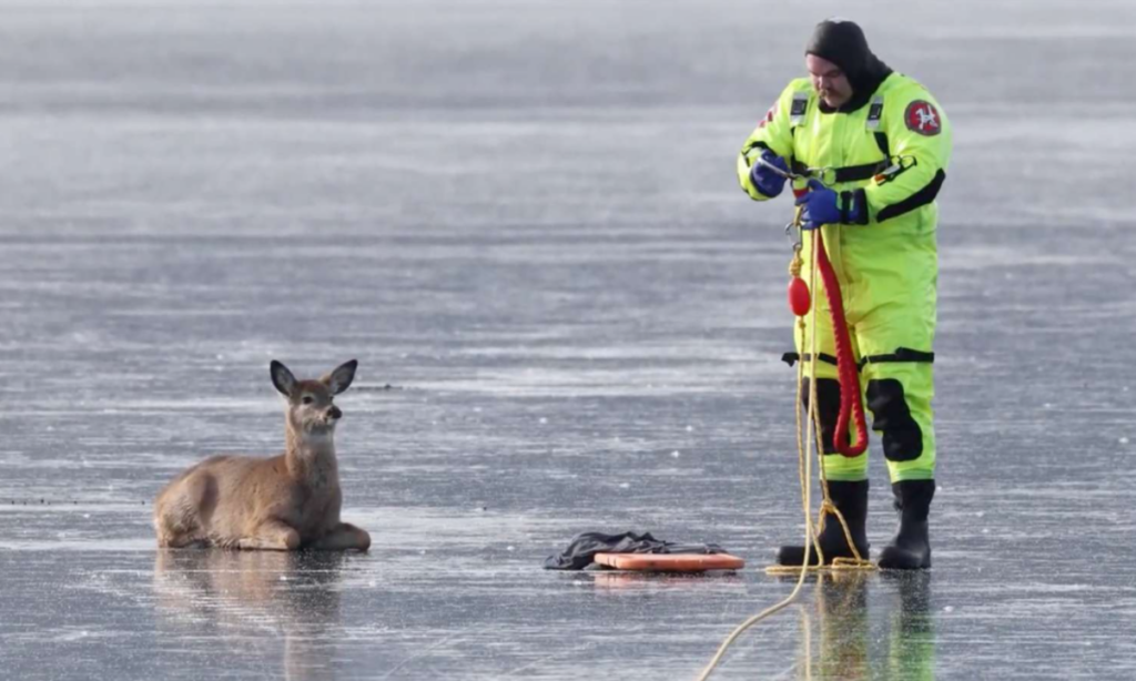 Firefighters Rescue Deer Trapped on Frozen Washington Lake
