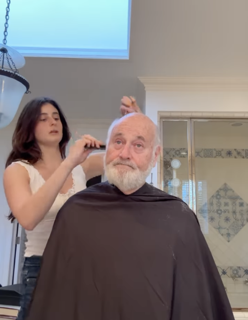 In one viral moment from last October, Romy shared a video of herself cutting Rob’s hair while asking for career advice. Joking about the pressures of being labeled a “nepo baby,” she playfully asked if cosmetic surgery would help her career.