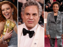 A collection of celebrities at Sunday’s Golden Globes red carpet wore pins with the messages “Ice Out” and “Be Good” to honor the memory of Renee Nicole Good,