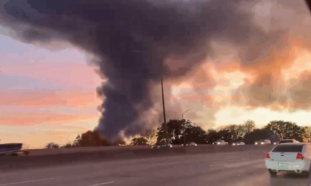 Officials described the area as covered in fire and debris, leading authorities to issue a shelter-in-place order for everyone within a five-mile radius of the airport.